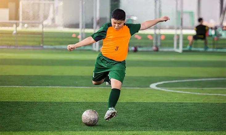 The soccer ball kicking technique focuses on the plant foot position and introduces movement into the kicking process. The advanced techniques of learning to kick and shoot a soccer ball are crucial for transitioning young soccer players from stationary ball control to dynamic play.