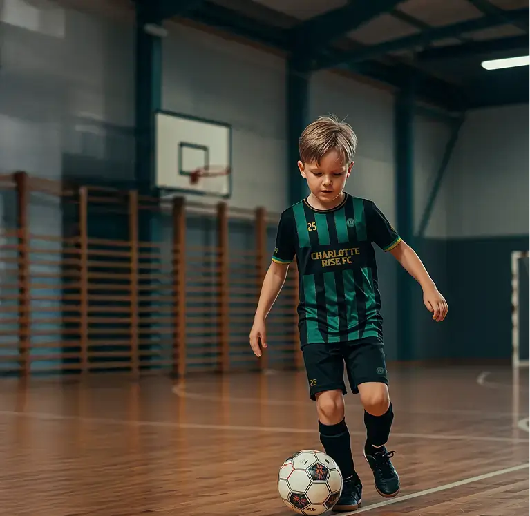Yes. All players wear the official Charlotte Rise FC uniform kit, which includes one jersey, shorts, and calf sleeves. The full kit costs $49 and can be purchased during registration. Wearing the same uniform builds team unity and pride, helping young athletes feel part of the Charlotte Rise FC family during every winter session.